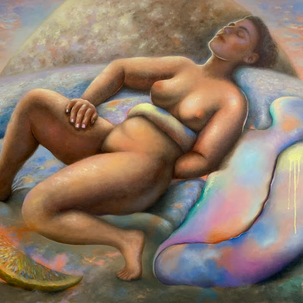 Through oil painting, Clara portrays women seeking mental balance, immersed in fantastical landscapes, to raise awareness about the beauty and fragility of the world. Her work explores themes of nature, meditation and sisterhood. In response to the anxiety surrounding environmental fragility, Clara aims to create more optimistic works. Her goal is to engage viewers and present a positive vision for the future. She delves into the complex relationship between humanity and nature—both spectacular and deteriorating—and strives to materialize this dynamic, showcasing the interaction between humans and their environment.